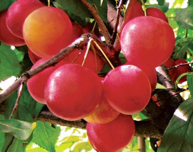 Подрастая, крупномеры алычи превращаются в среднерослые деревья с пышной раскидистой кроной. Этому сорту присуща хорошая засухоустойчивость. Посадив саженцы алычи, вы сможете собирать карминно-красные плоды среднего размера, подходящие для приготовления компотов, варений и прочих заготовок. Ягоды также можно употреблять в пищу в свежем виде.