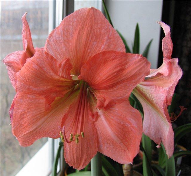 Амариллис простой рилона - это великолепное растение с лососевыми цветками, которое поразит вас своей красотой и изяществом. Его стебель достигает высоты 50-70 см, а размер цветка составляет 19 см, что делает его по-настоящему величественным. Листья амариллиса имеют интересную форму, что придает растению особый шарм.
