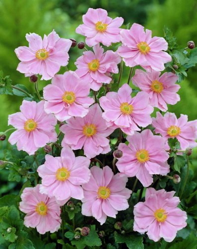 Рассада Анемоны японской Max Vogel (Макс Вогел) отличается от других видов тем, что на ней расцветает очень много цветов. Цветы нежно-розового цвета и имеют желто-зеленую середину. Семена прорастают быстро, и цвести Анемона японская Max Vogel (Макс Вогел) начинает с августа, а заканчивает в сентябре.