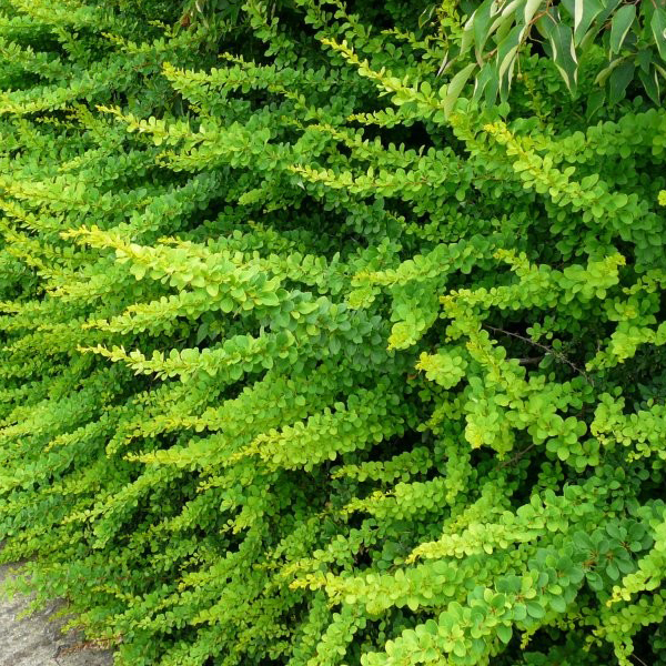 Саженцы кустарника барбариса Зеленый ковер (Green Carpet) это невообразимо красивый сорт, который впервые был выращен в Голландии. Высота растения составляет 50 см, а диаметр доходит до 1,2 метров. Часто крупномер барбариса Зеленый ковер используется с целью подбивки кустарников большой высоты в качестве яркого акцента в композиции сада. Живая изгородь, созданная при помощи этого сорта барбариса, радует взор в течение круглого года: летом – это блестящая глянцевая листва, а в зимний период – плоды красного цвета. Цветение кустарника начинается в мае-июне. на нем появляются одиночные или собранные в соцветия цветы. Внутри они желтого цвета, а сверху красные, располагаются по всей длине побега. Плоды растения созревают в сентябре, они блестящие и продолговатые, их много, они имеют красный и розовый оттенок. Плоды продолжают украшать куст даже после опадания листьев осенью и порой держатся всю зиму. Сорт Зеленый ковер очень любит освещенные участки и хорошо переносит засуху. Также он неприхотлив к плодородию почвы, но лучше развивается на щелочном грунте. Растение отлично приживается в условиях городских парков.