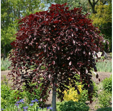 Саженцы Березы повислой Пурпурэя (Purpurea) характеризуются медленным ростом, плакучей формой кроны и необыкновенным бордово-красным оттенком листвы. Это эффектное дерево требует простора, вырастая на 10 метров в высоту. Красиво смотрится береза на фоне строений со светлой окраской стен или крыши, а так же в компании кустарников с изумрудной листвой.