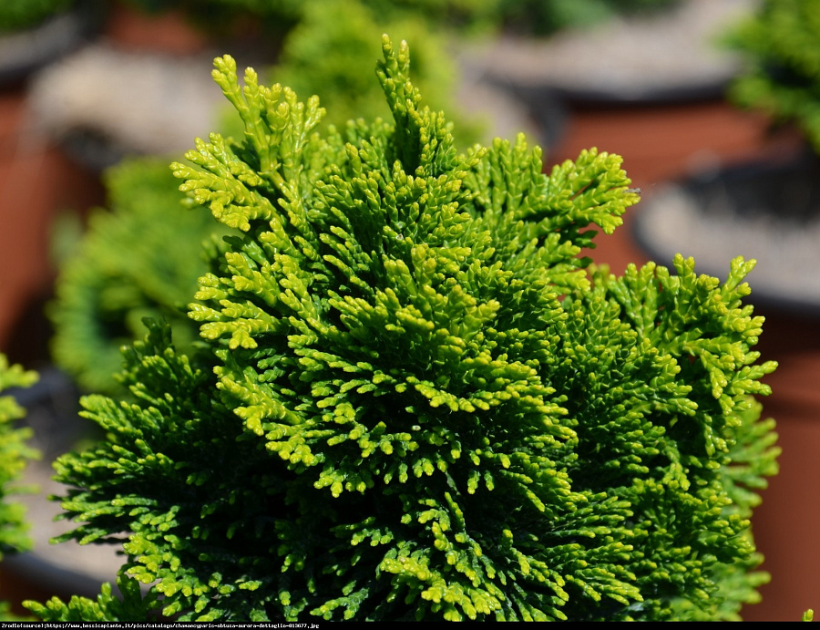 Саженцы Кипарисовика тупого Аврора (Aurora) представляет собой небольшое компактное конусообразное хвойное дерево, высота которого не превышает 60 сантиметров. Очень необычный сорт кипарисовика удивителен своими вьющимися веточками, которые напоминают морские кораллы. Хвоя густая, чешуйчатая, изумрудно-салатового оттенка.
