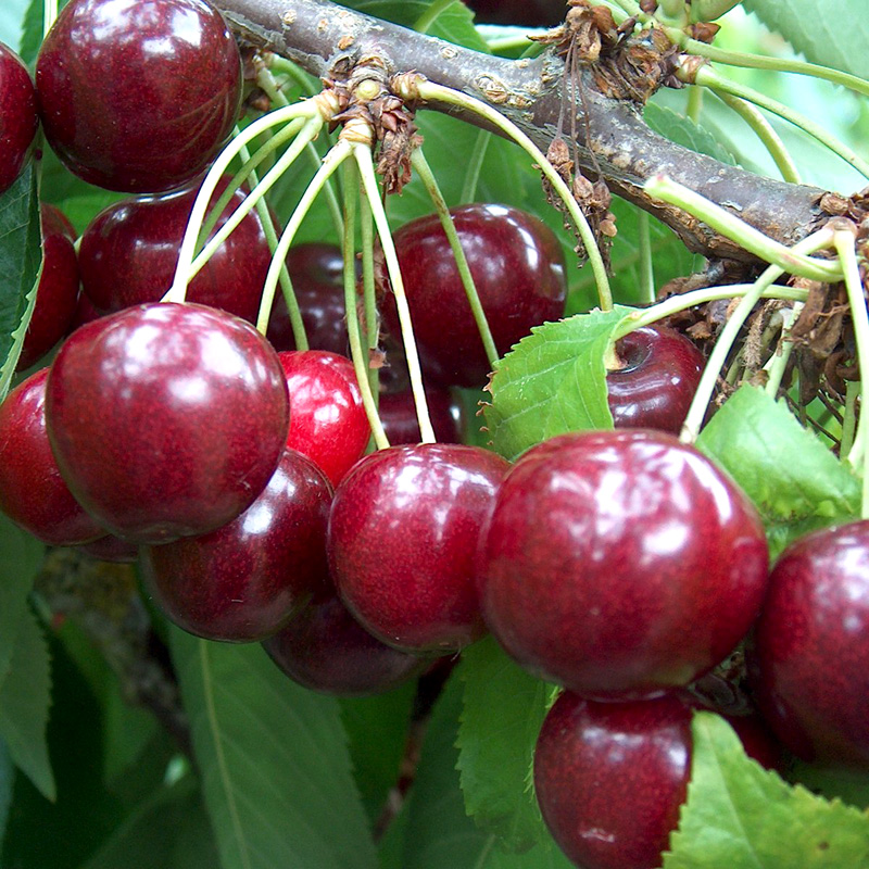 Саженцы черешни Аделина относятся к высокоурожайным сортам со средним сроком созревания. Высота взрослого дерева не превышает 3,5 метров. Первый урожай можно ожидать на четвертый год посадки крупномера черешни. Описание ягод: