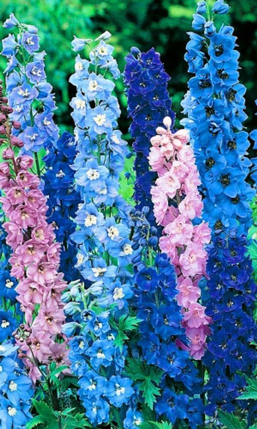 Дельфиниум однолетний "Летний танец" - это настоящий художник среди растений, который создает яркую и разнообразную палитру цветов. Его стебель прочный и прямой, достигает высоты до 130 см, что делает его заметным акцентом в саду. Листья дельфиниума имеют необычную форму, добавляя изюминку в общий вид растения.