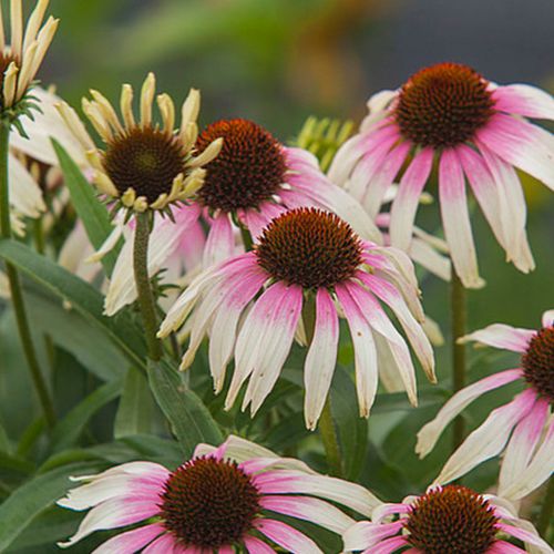 Эхинацея пурпурная Фонтейн Пинк Ай относятся к одним из самых нежных популярных растений, которые наполнят сад классическим благородным шармом. Ромашковидные лепестки имеют двойную окраску ― у основания они ярко-розовые, а ближе к концам становятся почти белоснежными. С ними эффектно контрастирует выступающий над лепестками темный центр. С июля по начало осени кустики усыпаны многочисленными цветами.