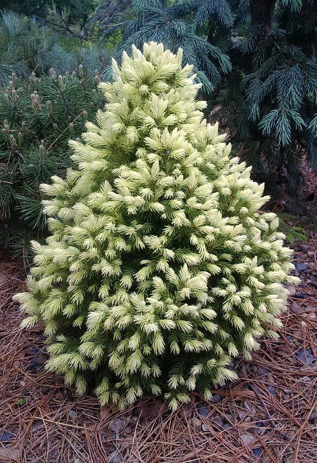Саженцы ели сизой Дейзи Уайт (Daisy's White) вырастут в деревце со строгой конусовидной плотной кроной. Декоративная особенность сорта — окрас побегов, появляющиеся дважды в год: очень светлые кремового, золотистого и близких к этому оттенков. Хвоя мягкая. Рост медленный — к 10 годам высота дерева около 1 м, максимальная высота — до 1,5 м при диаметре до 80 см. Окрас более ярко выражен на солнечном месте, но сорт переносит и полутень. Грунт с хорошим дренажом, средней влажности и плодородный, рекомендуется мульчирование. Практикуется продажа и высадка ели Дейзи Уайт в виде крупномера.