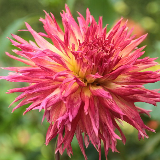 Луковицы георгины Aitara Bronwyn высаживают в открытый грунт в мае, когда почва уже достаточно прогреется. На протяжении роста растению требуется умеренный полив и периодические подкормки. Высота взрослых кустиков достигает до 90-100 см. Побеги прямостоячие, густо покрыты темно-зеленой листвой. Зацветают георгины Aitara Bronwyn в июне. Соцветия густомахровые, очень крупные, диаметром до 20-25 см. Лепестки немного рассеченные на краях. Внутри цветы желтые, а сверху — красно-розовые. Благодаря такой окраске растение смотрится очень эффектно даже в одиночных посадках.