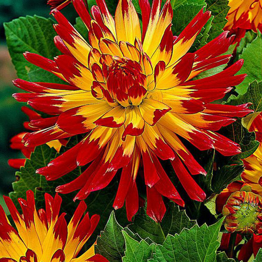 Погрузитесь в мир ярких красок и неповторимой красоты с георгиной полукактосовой Vuurvogel - растением, которое станет настоящим украшением вашего сада и принесет радость и восторг каждому, кто его увидит.