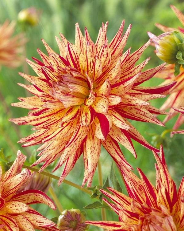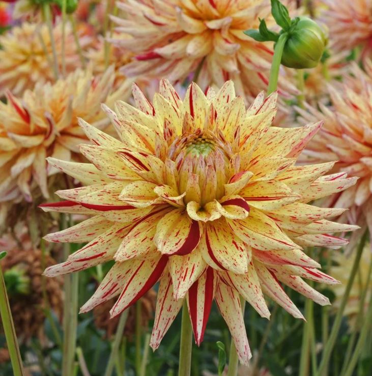 Георгина полукактусовая марканти - это удивительное растение с жёлтыми цветками, украшенными красным штрихом. Ее листья имеют необычную форму и создают неповторимый вид. Это растение отличается высокой устойчивостью к песчаным почвам и может радовать своим цветением в течение нескольких месяцев в году.