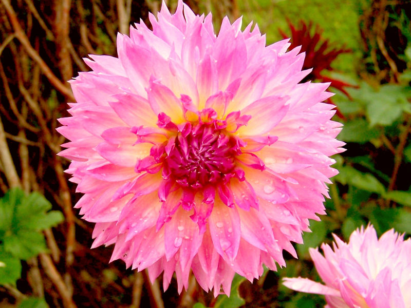 Луковицы георгины махровой Сакура Фубуки (Dáhlia variabilis Sakura Fubuki), выведенной в Японии, пользуются устойчивым спросом у цветоводов. С июля по сентябрь — восточная гармония и утонченность в вашем саду. Удивительный цветок как будто светится изнутри, его окраска напоминает цветение сакуры. Продолговатые розово-сиреневые лепестки собраны в пушистые шапочки, а в нежно-желтом центре цветка будто спрятано солнце. Диаметр цветочной корзинки — 10-15 сантиметров. Высота куста — до одного метра. Стебли крепкие, не требуют опоры. Важно, чтобы место посадки хорошо освещалось солнцем и было защищено от холодных ветров.