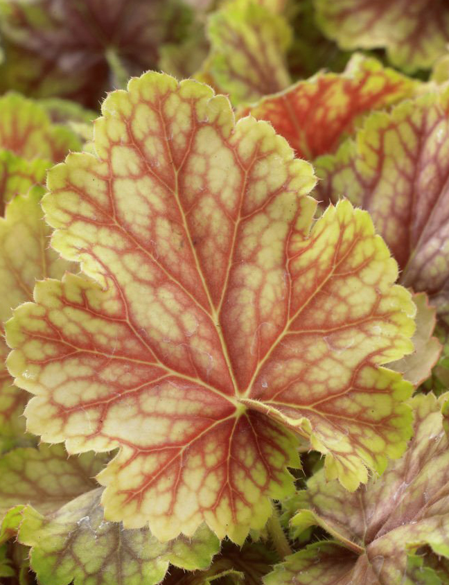 Рассада гейхеры Мастер Пеинтер Пикассо (Master Painter Picasso) порадует невероятно красивой окраской. По краям янтарно-бордовых листьев имеется золотистая каемка, а на поверхности проступают темные прожилки. Во второй половине лета среди листвы появляются высокие цветоносы с кремовыми соцветиями.