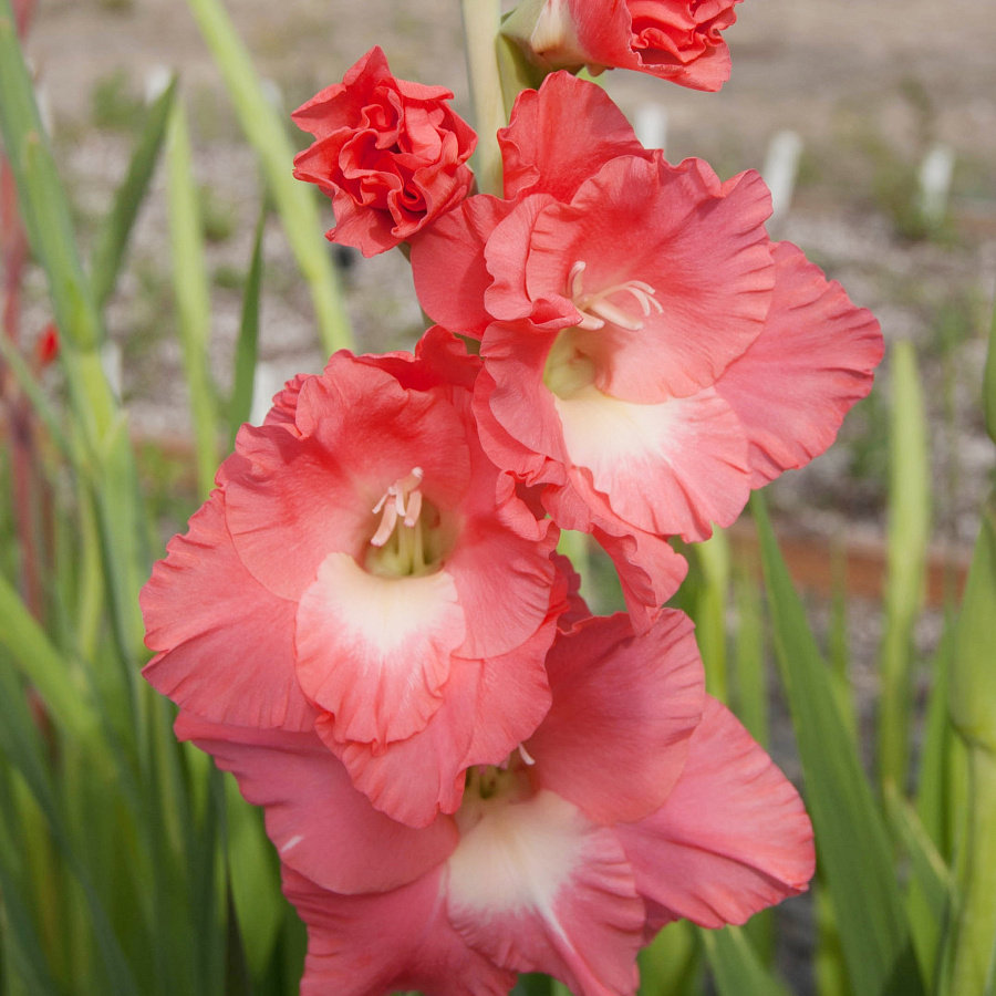 Луковицы гладиолуса гибридного Lolita используются цветоводами для создания красивых одиночных и групповых посадок, смешанных цветников, получения цветоносов на срез. Растения хорошо растут и цветут на любой достаточно дренированной почве со слабокислой реакцией. Места выбирают солнечные или частично освещенные, защищенные от ветров.  Стебли вертикальные, прочные, высотой до 120-150 см. Период цветения наступает в конце июня. Цветы собираются в пышные соцветия. Окраска гладиолусов гибридных Lolita светло-розовая. В центре цветочка имеется белое пятнышко, которое эффектно переливается на солнце.