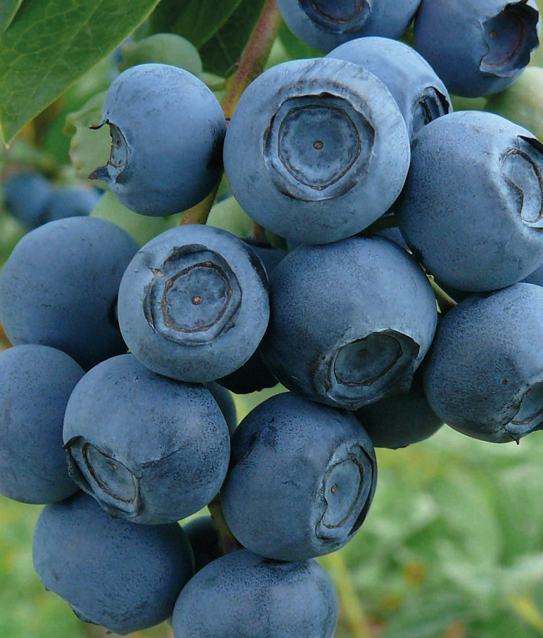 Крупномеры стоит высаживать в места, защищенные от морозных ветров. Ароматные плоды средней величины имеют светло-синий оттенок и покрыты сизым налетом, вкус приятный с кислинкой. Голубика высокорослая Чантиклер может приносить до 6 кг ягод с одного куста, плодоносить начинает с конца июня.
