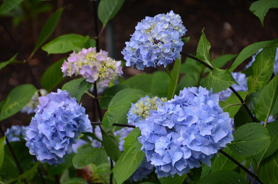 Саженцы Гортензии Крупнолистовой Со Лонг Эбони (so long eboni) в зависимости от региона вырастают до 1-1,5 метров, растение теплолюбивое и хорошо разрастается в южных регионах. В более жестком климате можно наслаждаться компактными формами этого кустарника при таком же обилии красивейших шарообразных соцветий, которыми Со Лонг Эбони усыпан с июня до середины осени. Бутоны крупные, около 15 сантиметров в диаметре. Они являются оригинальным украшениям для любых клумб и цветников и прекрасно смотрятся в букетах, цвете нередко используют на срез.
