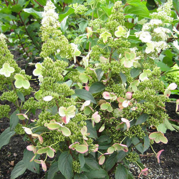 Саженцы Гортензии метельчатой Мэджикал Гималая (Magical Hymalaya, Hydrangea paniculata) – это очень привлекательный куст, который вырастает в высоту и ширину примерно 100-150 сантиметров. Это растение имеет твердые красновато-коричневые отростки, которые не нуждаются в опоре. Гортензия метельчатой Мэджикал Гималая летом украшена внушительными зеленовато-белыми цветками в метельчатых соцветиях. Такое щедрое цветение происходит на побегах сопутствующего года, обычно с июля по сентябрь. Рекомендуется высаживать растение на солнечном или полутенистом месте и предпочтительно на плодородном, кислом, влажном, дренированном грунте.