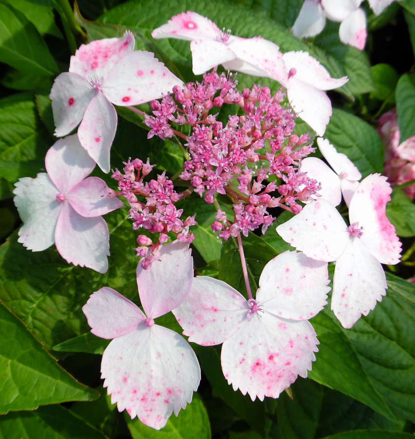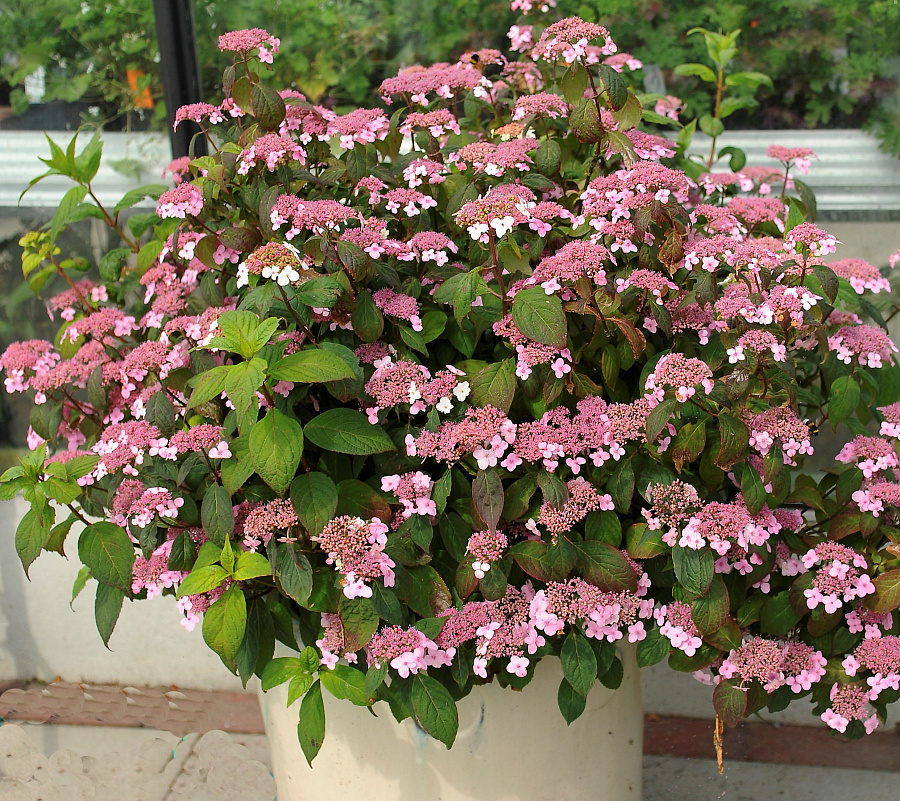 Саженцы Гортензии пильчатой Оамача (Oamacha, Hydrangea serrata) – привлекательный вид пильчатой гортензии. Растение вырастает до 100 сантиметров в длину и 80 сантиметров в ширину. Гортензия имеет бледно-розовые цветки, которые со временем темнеют и к концу цветения становятся малиновыми. На кислой почве его цветки обретают синюю окраску. Гортензия пильчатой Оамача имеет маленькие соцветия плоской формы. Обильное цветение продолжается с июня по август. У гортензии листва, которая весной окрашена в фиолетовый цвет, летом зеленеет, а осенью становится пурпурной. Предпочитает освещенные места и дренированный грунт. Важно не допускать избыток влаги в почве.