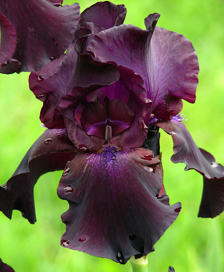 • продолжительное цветение. Распустившиеся бутоны имеют темный свекольный оттенок. Лепестки немного волнистые, с фиолетовой бородкой снизу и рыжей сверху. Семенами размножается плохо, предпочтительнее вегетативный способ. В качестве места посадки ириса германского Суеверие лучше выбирать места с ярким солнцем и отсутствием порывов ветра.