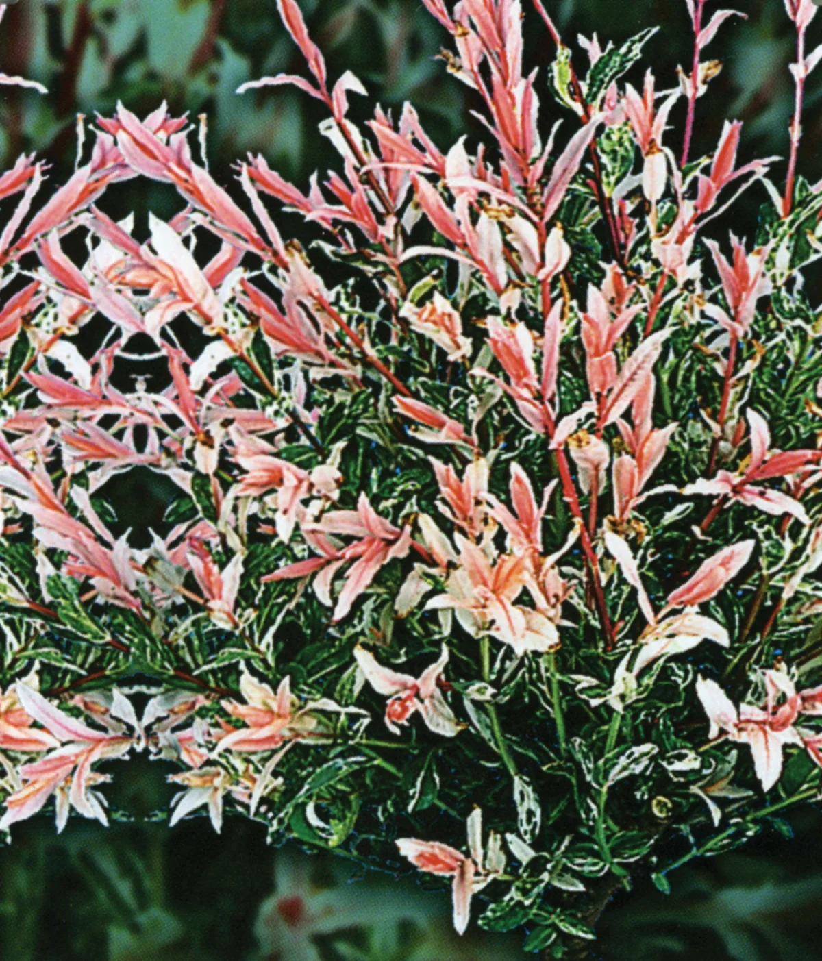 - стойкость к заморозкам. Высадка крупномеров позволит обойти моменты с сохранение маленького саженца и сразу насладиться результатом. Ива цельнолистная Фламинго предпочитает удобренные почвы с умеренной влажностью. Яркая окраска, необычный внешний вид привлекают многих садоводов. Используют это растение не только в качестве дополнительного украшения в сочетании с другими кустарниками, но также как одиночный декоративный элемент. Простой уход, обусловленный неприхотливостью культуры, позволяет получить пышные кусты, из которых можно сформировать живую изгородь.Хороша в композиции с другими невысокими деревьями и кустарниками.
