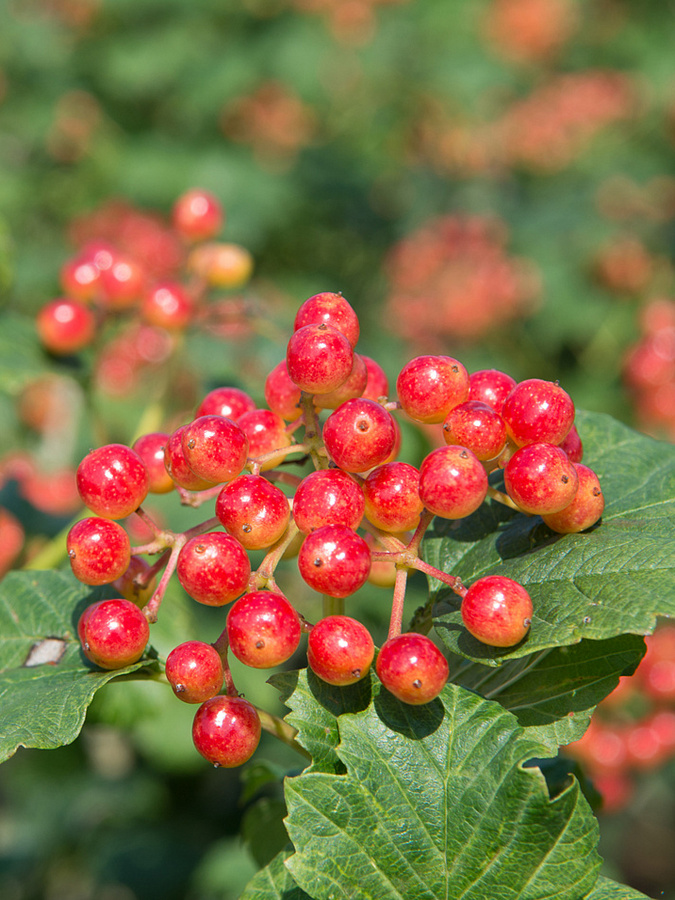 Калина обыкновенная - это удивительное растение с прекрасными характеристиками, которые поразят вас своей красотой и пользой. Ее ствол прочный и изящный, а размеры достигают величественных 4 метров в высоту и 3 метров в диаметре. Листья калины обыкновенной имеют форму сердца и зеленый оттенок, создавая неповторимый летний акцент в вашем саду.