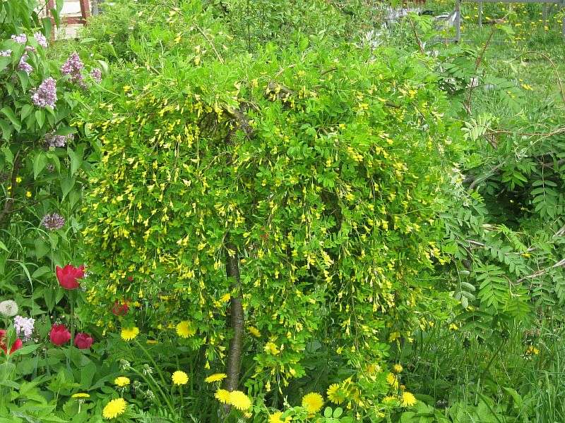 Саженцы кустарника караганы древовидной Пендула (Pendula) чрезвычайно нетребовательны к почвам, обладают высокой морозоустойчивостью и хорошо переносят городские условия. Взрослое дерево имеет зонтикообразную крону с ярко выраженным плакучим эффектом. Максимальный размер по высоте и диаметру — до 2 метров. Листья зелёные чаще всего вплоть до опадания. Жёлтые, мотылькового типа, цветы (до 2 см величиной) появляются после раскрытия листьев — май-июнь. При созревании стручков створки скручиваются с резким треском, разбрасывая цилиндрической формы семена. Для формирования кроны рекомендуется обрезка. Возможно приобретение и высадка крупномера караганы Пендула.
