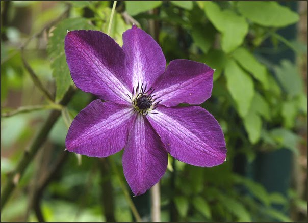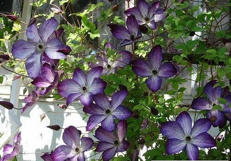 Саженцы клематиса гибридного Найт Вейл (Night Veil) предпочитают солнечные, защищенные от ветра места с водопроницаемой, суглинистой, слабощелочной или нейтральной, плодородной почвой. Высаживать растения необходимо рядом с опорами, чтобы длинные лианы (200-300см) имели возможность за что цепляться. Цветение продолжительное с июня по сентябрь. Цветки пурпурно-фиолетовые, со светлой, почти белой у основания, полосой посередине. Диаметр цветка достигает 8 см. Подходит для посадки у беседок, ограждений, сеток, решёток и других садовых опор. Особенно красиво смотрится на светлом фоне и когда карабкается по натуральным опорам.