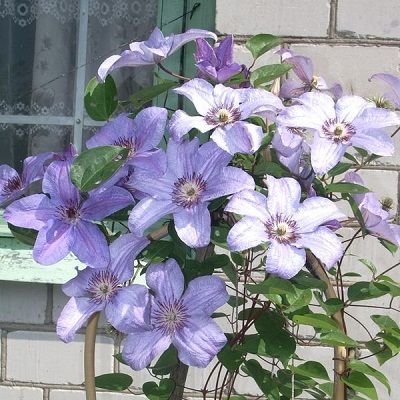 Клематис крупноцветковый "Министр" - это великолепное растение, которое поразит вас своей красотой и изяществом. Его стебли достигают высоты до 250 см, создавая великолепный вертикальный акцент в вашем саду. Цветки голубовато-розового оттенка с розовой штриховкой привлекут внимание всех окружающих.