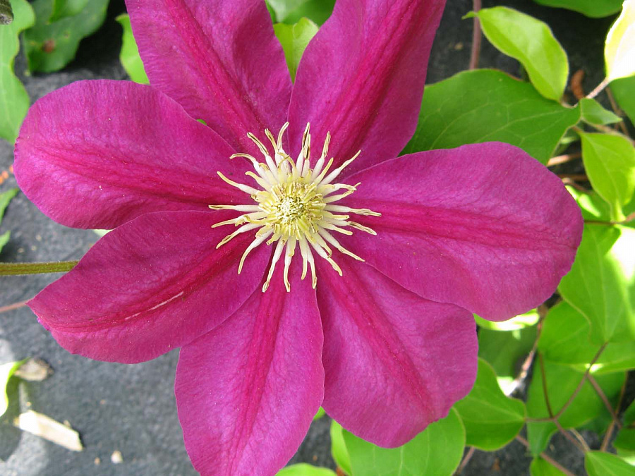 Клематис крупноцветковый вино - это изысканное растение, которое поразит вас своей красотой и изяществом. Его ствол прочный и устойчивый, достигает высоты до 250-300 см, создавая великолепный акцент в вашем саду. Листья клематиса имеют элегантную форму, а цветки крупные, ярко-розово-красные, с контрастными пыльниками кремово-желтого цвета, размером 15-18 см.