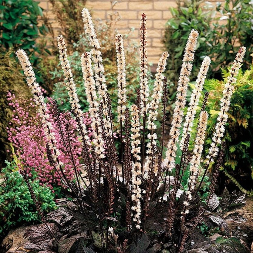 Рассаду Клопогона ветвистого Atropurpurea (Атропурпуреа) лучше всего высаживать во влажную почву. Хорошо приживается в тени. Это многолетнее растение созревает три года, а цветет в конце лета. Цветы бледно-розовые. Соцветие длинное, до 40 см. Листья большие, мощные, могут быть разного цвета от темно-зеленого до фиолетового. Эти большие листья к тому же могут избавить вас от сорняков. Растение очень крупное, высота может достигать двух метров. Семена отличаются очень хорошей всхожестью. Всходят на шестой месяц.