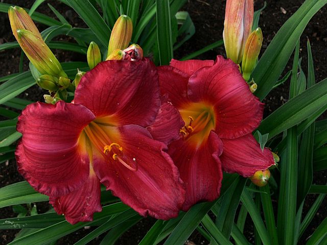 Рассада лилейника Чарльз Джонстон (Charles Johnston) – травянистое растение до 60 см в высоту с крупными приятно пахнущими цветами красного оттенка с желтой центральной частью. Период цветения длится с июля до августа. Предпочтительнее высаживать рассаду на открытом участке с возможностью свободного доступа солнечных лучей. Сорт выносит и несильную тень, что негативно сказывается на обильности цветения. Что касается почвы, то рекомендуется подбирать глинистые с удобрением их перегноем. Часто сорт Чарльз Джонстон применяется для срезки, а также для украшения групп кустарников, газонов, для оформления смешанных композиций.