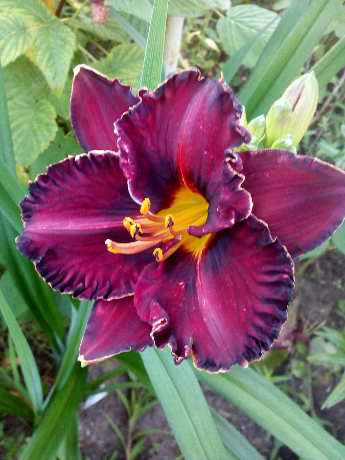 Окраска цветка : тёмно-пурпурный с тёмным глазком и зелёным горлом