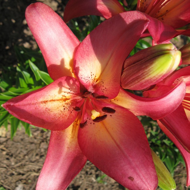 Окраска цветка : темно-розовый с желтым центром и крапом