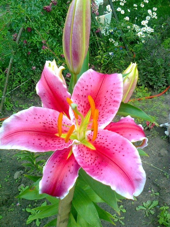 Луковицы лилии восточной Акапулько (Acapulco) – сорт, достойный самого выгодного места в саду, откуда будет радовать своим ярким цветением теплыми летними днями. Изюминка цветков – в слегка гофрированных лепестках с темными мазками и красными крапинками. Ярко-оранжевые рыльца добавляют соцветиям контраста. На прочных длинных побегах умещается несколько соцветий.