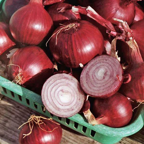 Лук-севок и семена лука Ред Барон позволят вырастить пряный овощь необычного красного оттенка. Этот сорт отличается приятным не слишком острым вкусом, что делает его пригодным для салатов из свежих овощей и прочих блюд. Крупные плоды могут достигать 150 грамм. На созревание уходит почти три месяца.