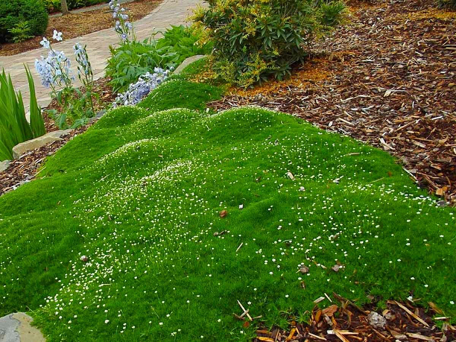 - Декоративная ценность – в период цветения живой ковер покрывается сотнями миниатюрных белоснежных цветков, на фоне темной зелени напоминающих звезды в ночном небе.