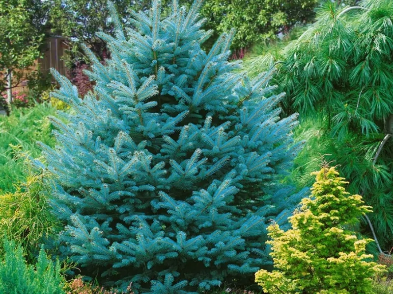 Саженцы Ели колючей Супер Блю (Super Blue) – изысканное, быстрорастущее дерево с кроной в форме конуса. Высота ели 10-15 метров. У дерева густая, колючей, зеленая хвоя длиной 1,5-3 сантиметра. Крепкие ветви растут горизонтально. У взрослого растения часть ствола открыта. Ель колючей Супер Блю интересные плоды в виде смолистых цилиндрических шишек, которые сначала имеют желтовато-зеленый или красноватый оттенок. А со временем они набирают коричневый цвет и вырастают в длину до 5-10 сантиметров и ширину 2-3 сантиметра. В этих шишках скрываются семена черного цвета. Шишки могут оставаться на ветках до весны и даже до осени последующего года.