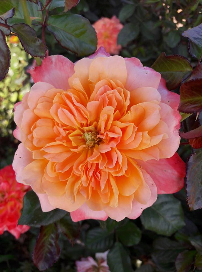 Саженцы розы чайно-гибридной Samaritan лучше всего растут на солнечных или частично затененных участках. К почве растение неприхотливо. Но если вы хотите, чтобы кустарник обильно и продолжительно цвел, то выбирайте питательные, увлажненные, рыхлые, дренированные грунты. Высота растения достигает до 80 см. Цветок розы чайно-гибридной Samaritan крупный, 8-10 см в диаметре, красивого розовато-абрикосового цвета, густомахровый, с большим количеством небольших волнистых лепестков. Бутоны появляются в основном по одному или в небольших кистях. Цветы достаточно долго держаться на кусте.