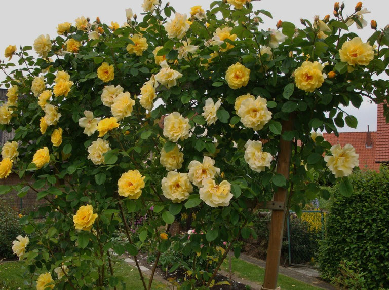 Саженцы розы «Голден Шоверс» (Golden Showers) лучше всего высаживать осенью. Участок выбирают хорошо освещенный с дренированной почвой. Сорт саженцев розы «Голден Шоверс» отличается устойчивостью перед морозами, болезнями и вредителями, неблагоприятными погодными условиями. Высота кустика от 200 до 250 см, а ширина – до 150 см. Цветение обильное и продолжительное. Цветочки окрашены в пурпурно-малиновый цвет. Их диаметр – 9 см. На протяжении всего периода цветения от куста исходит приятный аромат. Используют крупномеры розы «Голден Шоверс» преимущественно для вертикального озеленения.