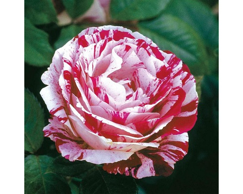 Окраска цветка : флорибунда, темно-красный фон с белыми полосами и размытыми пятнами