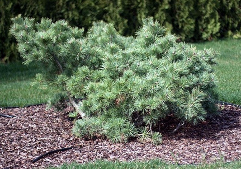 Саженцы сосны Веймутова Макопин (Macopin) – миниатюрные кустарники с густой сизой хвоей, усыпанной свечками желто-зеленых шишек. Побеги разрастаются в стороны и крона приобретает неправильную округлую форму. Длинная голубовато-зеленая хвоя выглядит очень живописно. Высота взрослого крупномера 1,5 м. Плодоносит сосна Веймутова Макопин тонкими цилиндрическими шишками. Почки яркие, как свечи, смолистые. Достоинства: