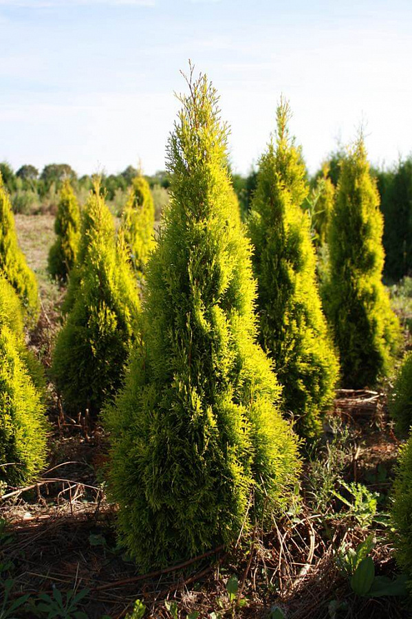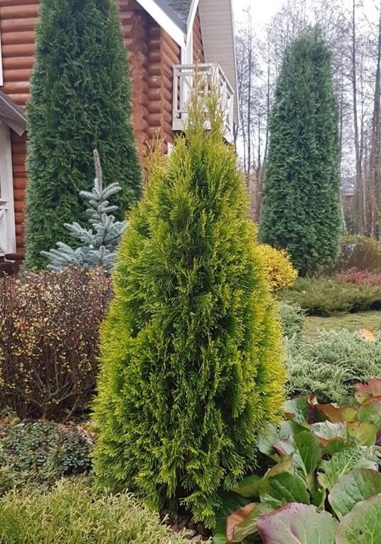 В любое время года от этой туи трудно отвести взгляд: яркая зеленая хвоя постоянно сохраняет насыщенный цвет.