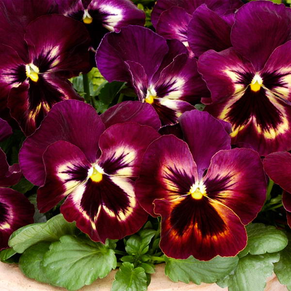 Виола крупноцветковая "Маммот Сангрия Пунш" - это настоящий цветочный шедевр для вашего сада! Ее яркие цветы диаметром от 7 до 9 см поражают своим разнообразием и красотой. Это растение достигает высоты 15-20 см, идеально подходит для групповых посадок. Листья виолы имеют интересную форму и насыщенный зеленый цвет, что делает растение еще более привлекательным.