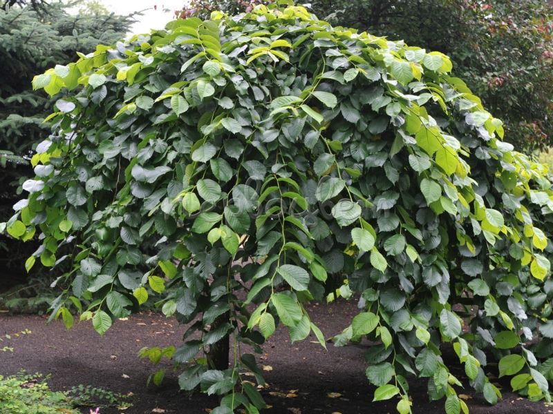 Саженцы вяза гладкого Кампердоуни (Camperdownii) – украсят любой ландшафт зелеными зонтиками крон с плакучими ветвями. Высота крупномеров достигает 5 м. Повисающие ветви с темно-зелеными шероховатыми листьями формируют элегантную зонтичную форму кроны. Весенние почки крупные, круглые, кофейного оттенка. Перед появлением листвы вяз цветет лиловыми цветками. Плодоносит крылатками. Сорт вяза гладкого Кампердоуни идеален для формирования аллей и арок.